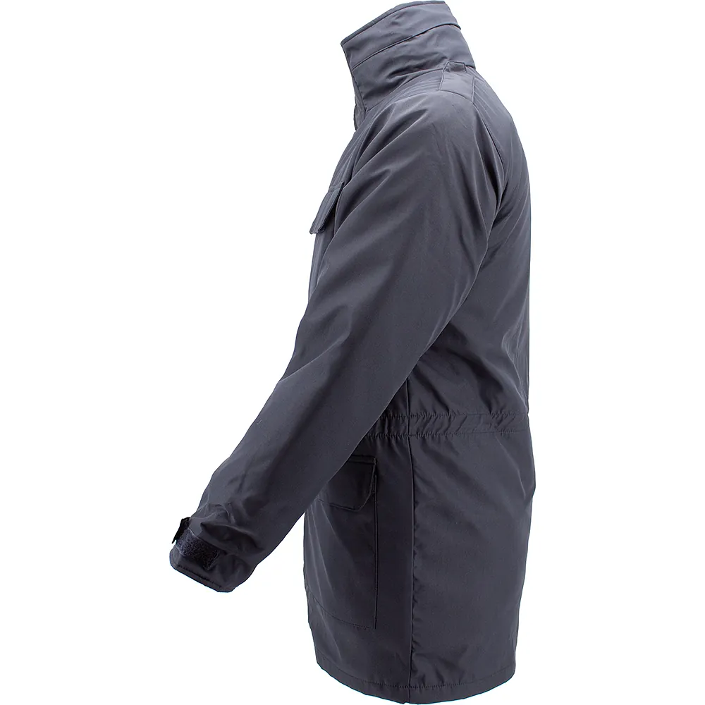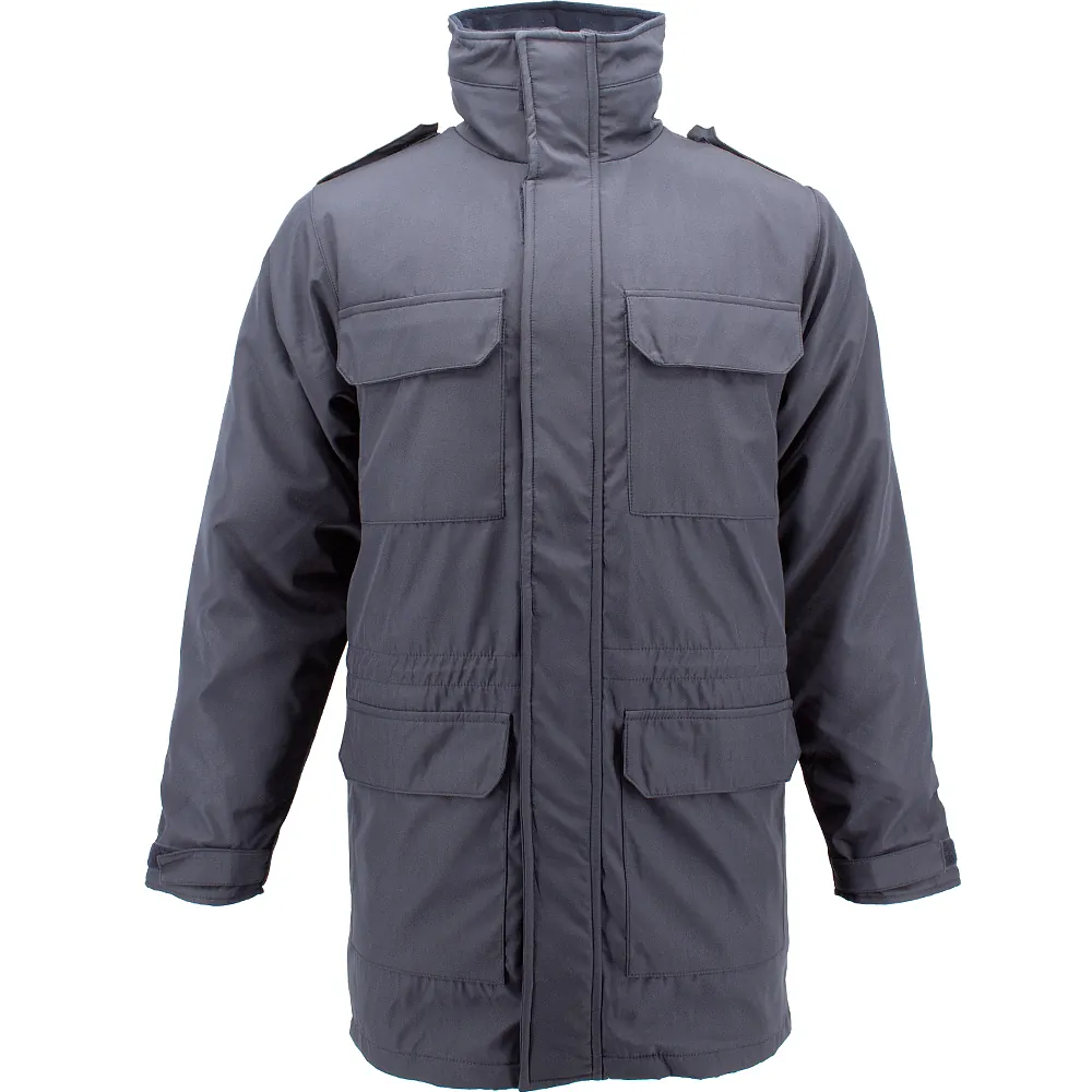 Ausstattung: • Nach Bekleidungsvorschriften des NÖ LFV • Reißverschlussgarage • Wasser- und schmutzabweisend • Vordere Knopfleiste mit Abdeckleiste und Klettverschluss • mit Reißverschluss • 2 eingesetzte Seitentasche mit Patte • 2 Brusttasche • 1 Innentasche • hochschlagbarer Kragen mit eingearbeiteter Kapuze • Schulterklappen mit Klettverschluss