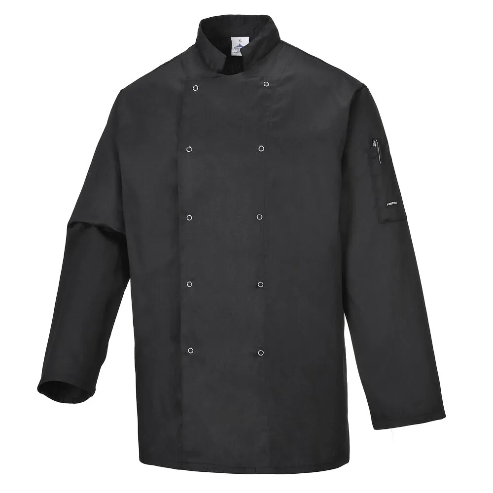 Konzipiert für Profis. Die Suffolk Jacke ist perfekt für die moderne Küche. Mit viel Bewegungsfreiheit und praktischen Druckknopfverschlüssen wird Sie diese Jacke den ganzen Tag gut aussehen und frisch fühlen lassen.