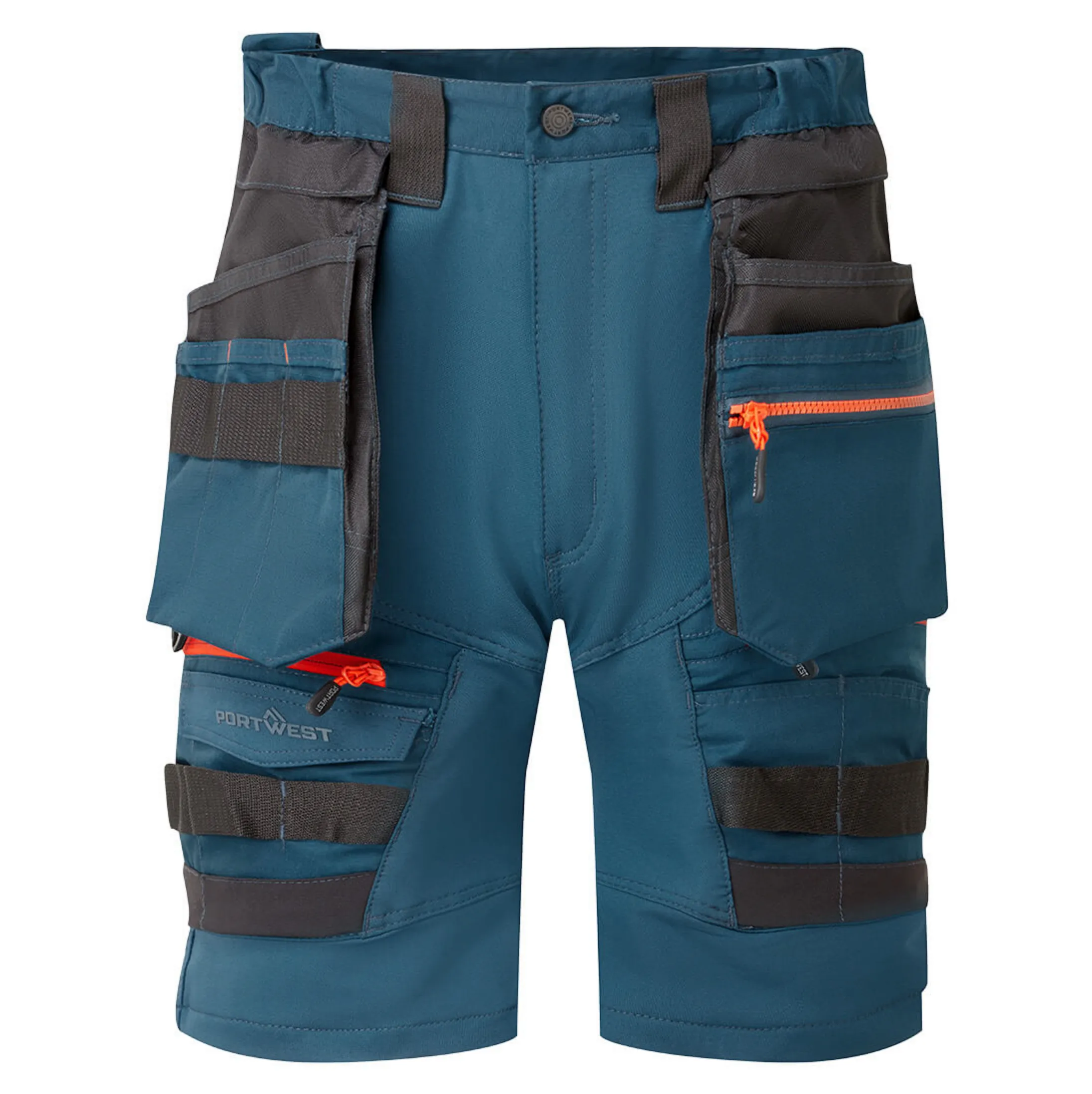 Die DX4 Hose mit abnehmbarem Warnschutz-Holster ist ergonomisch gestaltet und nutzt die gezielte Platzierung von dynamischen 4X-Stretch-Geweben, um maximale Bewegungsfreiheit beim Arbeiten zu gewährleisten. Die Hose verfügt über einen hochgezogenen Rückenbund mit seitlichem Gummizug, der Schutz in allen Arbeitspositionen gewährleistet. Dreifachnähte für maximale Haltbarkeit.