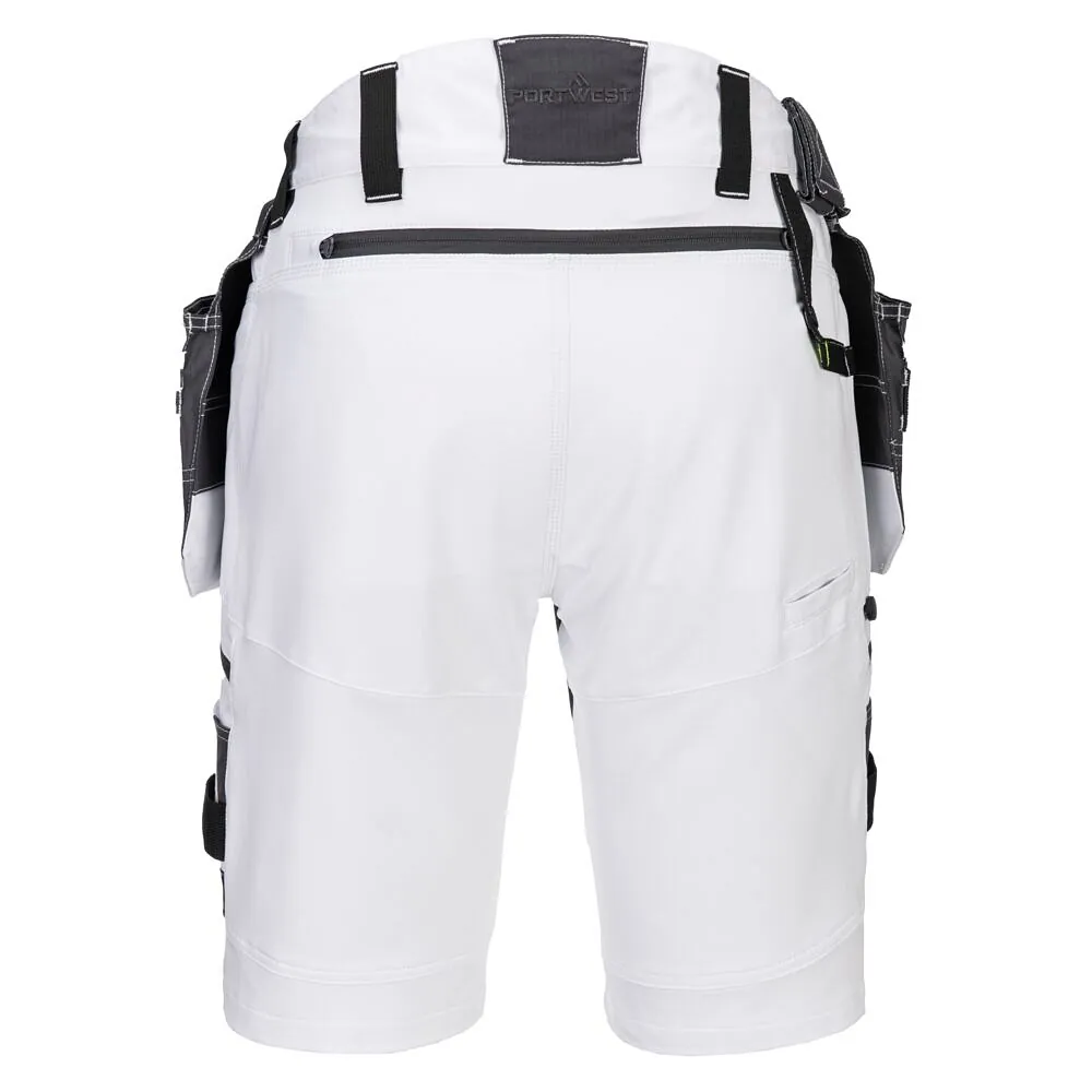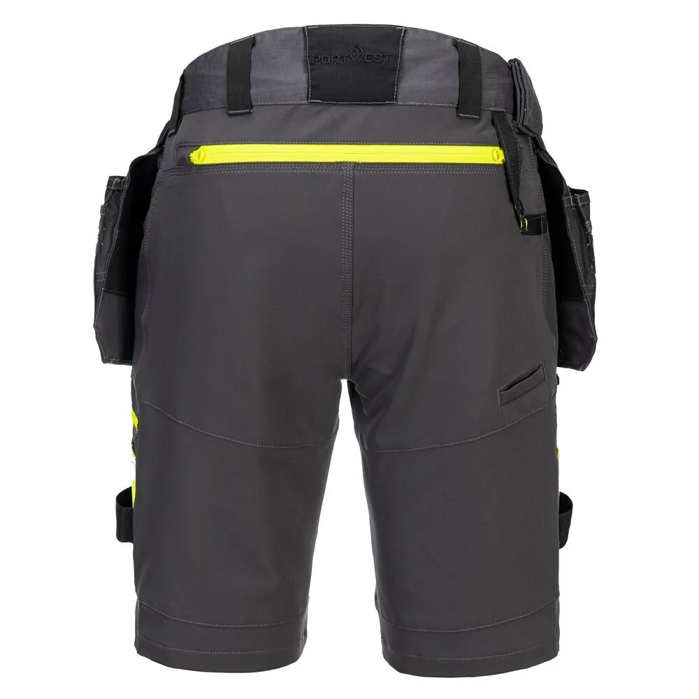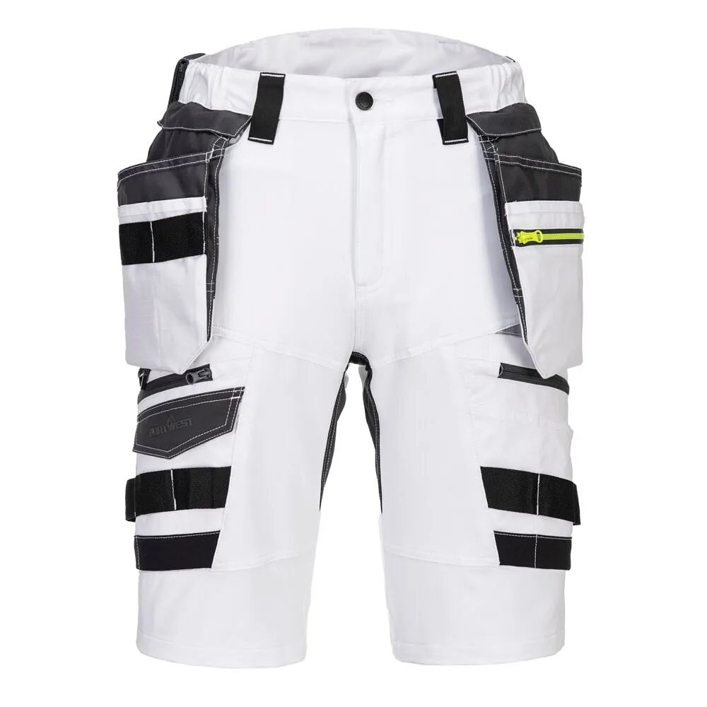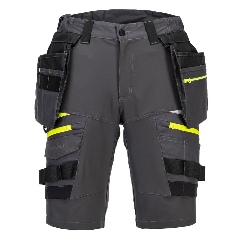 Die DX4 Hose mit abnehmbarem Warnschutz-Holster ist ergonomisch gestaltet und nutzt die gezielte Platzierung von dynamischen 4X-Stretch-Geweben, um maximale Bewegungsfreiheit beim Arbeiten zu gewährleisten. Die Hose verfügt über einen hochgezogenen Rückenbund mit seitlichem Gummizug, der Schutz in allen Arbeitspositionen gewährleistet. Dreifachnähte für maximale Haltbarkeit.
